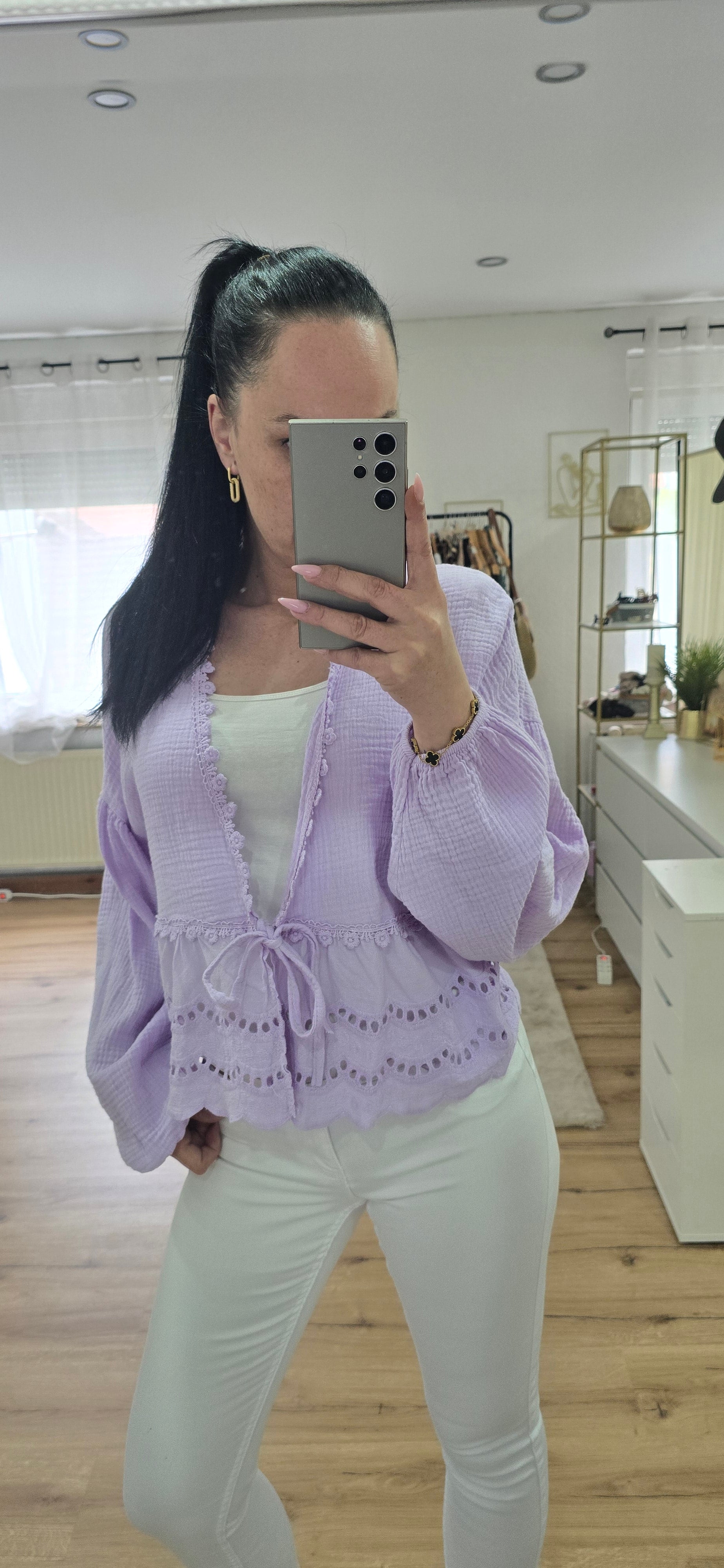 Diese charmante Strickjacke aus zarter Baumwollgaze ist das perfekte Accessoire für jede Jahreszeit! Mit ihrem verspielten Design und den Rüschendetails sorgt sie für einen frischen, femininen Look.